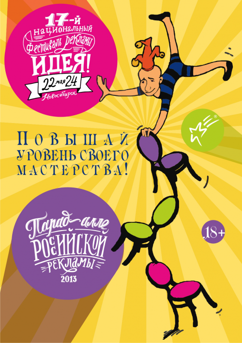 Национальный фестиваль рекламы «Идея!» совместно с информационно-аналитическим порталом Sostav.ru объявляет Конкурс на дополнительное место в жюри фестиваля. С помощью выложенного ниже шаблона, участникам предстоит создать рекламный плакат в фирменном стиле «Идея! 2013». Результаты конкурса на дополнительное место в жюри фестиваля «Идея!» будут объявлены 22 апреля!