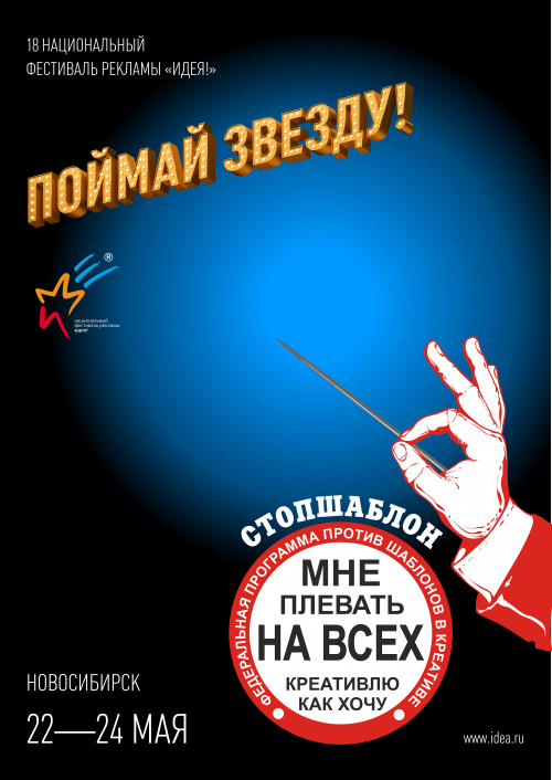 Национальный фестиваль рекламы «Идея!» совместно с информационно-аналитическим порталом Sostav.ru объявляет Конкурс на дополнительное место в жюри фестиваля. С помощью выложенного ниже шаблона, участникам предстоит создать рекламный плакат в фирменном стиле «Идея! 2014». Результаты конкурса на дополнительное место в жюри фестиваля «Идея!» будут объявлены 31 марта!