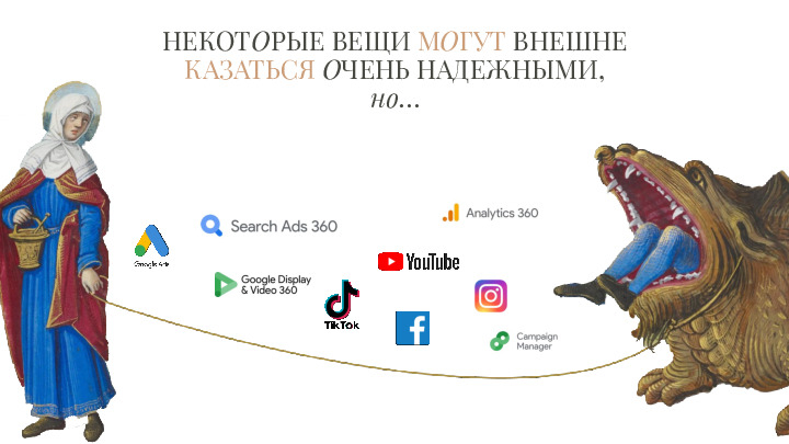 С 8 по 9 октября в Ереване прошла крупнейшая в России выездная конференция в области диджитал-маркетинга, которая ежегодно собирает вместе ключевых представителей рынка со стороны агентств, площадок и рекламодателей. Sostav традиционно делится презентациями делегатов. Александр Смирнов, заместитель руководителя департамента маркетинга и рекламы, начальник управления цифрового маркетинга «ВТБ», Булат Ламбаев, директор направления консалтинга, MGCom, рассказали об импортозамещении.