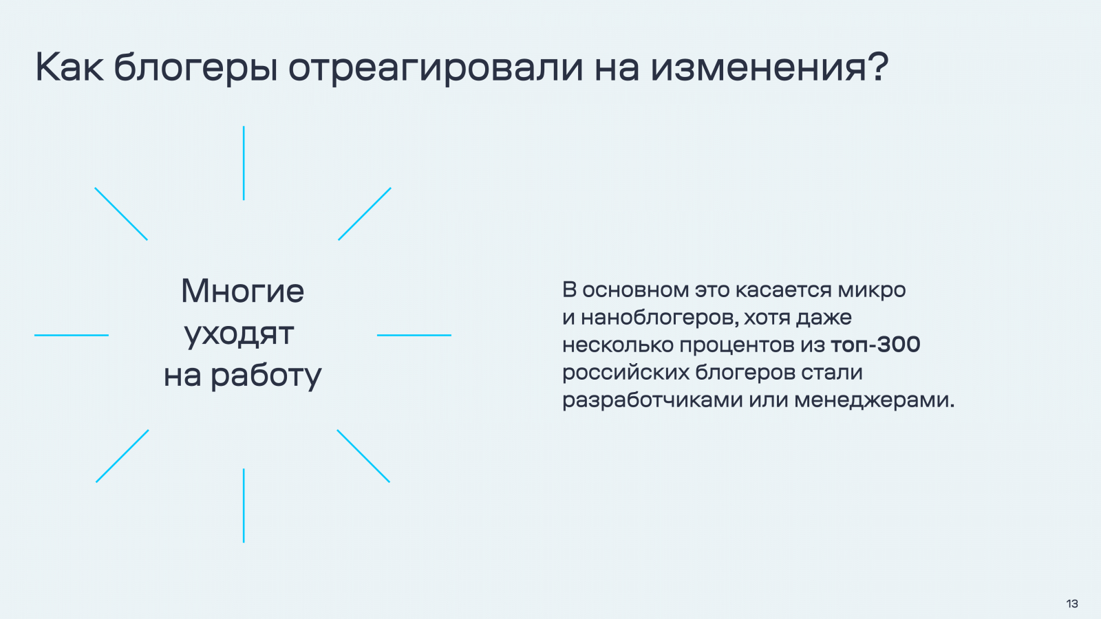 С 8 по 9 октября в Ереване прошла крупнейшая в России выездная конференция в области диджитал-маркетинга, которая ежегодно собирает вместе ключевых представителей рынка со стороны агентств, площадок и рекламодателей. Sostav традиционно делится презентациями делегатов. Евгения Казакова, главный операционный директор Perfluence, Александр Норовяткин, руководитель отдела по связям с общественностью в Solar Staff, рассказали, как компании отреагировали на изменения и как поменялось количество интеграций с блогерами.