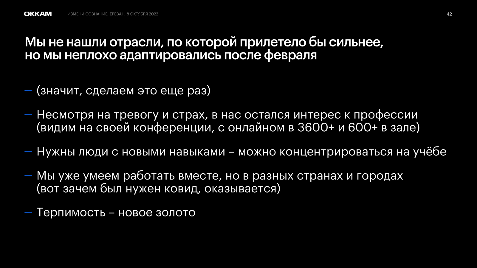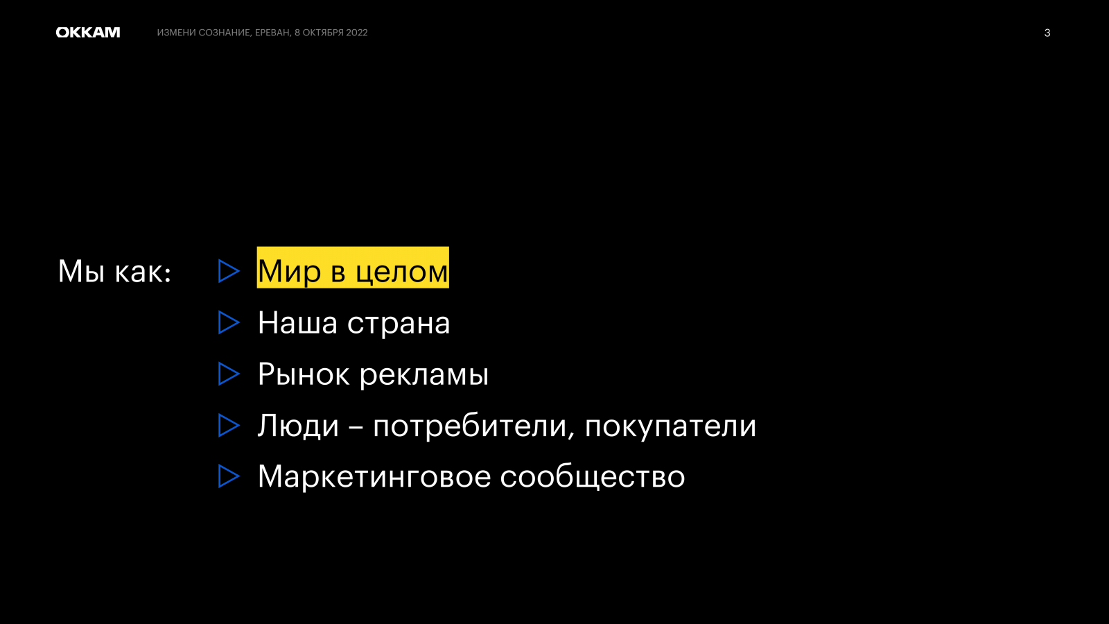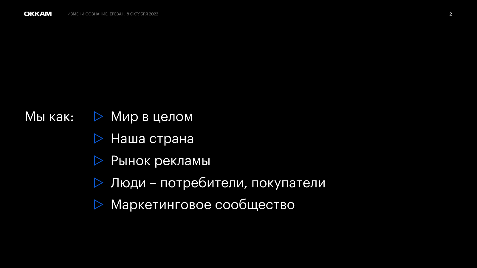 С 8 по 9 октября в Ереване прошла крупнейшая в России выездная конференция в области диджитал-маркетинга, которая ежегодно собирает вместе ключевых представителей рынка со стороны агентств, площадок и рекламодателей. Sostav традиционно делится презентациями делегатов.