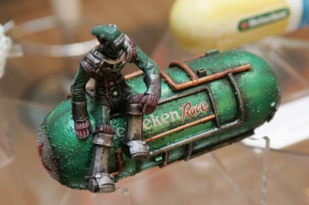 On premeditation of the writers, brilliant green metal color Heineken bottle