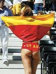 В воскресенье завершается чемпионат Европы по футболу. Три недели Старый Свет следил за баталиями, происходящими на зеленых газонах Португалии. Впрочем, в поле зрения репортеров и зрителей попадали не только главные герои Евро-2004 - футболисты, но и их жены, подруги, а также многочисленные болельщики, нещадно разрисовывавшие себя и наряжавшиеся в самые немыслимые наряды, лишь бы привлечь к себе всеобщее внимание. Впрочем, при всем многообразии фанатских раскрасок и нарядов нынешний чемпионат доказал, что в моде на трибунах остаются традиционные "прикиды": рогатые шлемы викингов, майки, панамы, банданы и кепки цветов национальных флагов и кричащий "геральдический" макияж. Пеструю мужскую массовку, как всегда, разбавляли болельщицы в купальниках, топлес и в трусиках-танга.