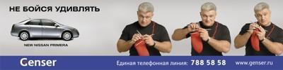 NISSAN удивляетВозможно, многие из читателей Sostav.ru уже видели в Сети баннерную, а на дорогах щитовую рекламу автомобиля NISSAN PRIMERA компании Genser со слоганом "Не бойся удивлять": на фоне автомобиля самый сильный человек России по прозвищу "Динамит" Владимир Турчинский… вяжет пушистый носочек По словам менеджера по рекламе компании Genser Дмитрия Мантрова, идея о подобном рекламном послании появилась еще зимой. Предполагалось, что "властитель дум" и образец силы и мужественности будет вязать нечто мягкое и розовое. Владимиру Турчинсткому, выбранному "лицом", парадоксальность образа тоже понравилась. Увлекшись, он даже начал предлагать свои варианты. Рестайлинг, проработку фирменного стиля, логотипа и создание самого образа осуществила дизайн-студия "Logomaker". Съемка проведена Петром Аникиным.. Рекламная кампания всего из пяти сюжетов, представляющих модельный ряд NISSAN, будет продолжена до конца года (разработка креатива-"ЮрАй Продакшен" под руководством Александра Юрасова) и обещает быть очень неожиданной - например, Владимиру Турчинскому придется побывать в самых разных образах, включая панка с розовым ирокезом. ![]() ![]() |