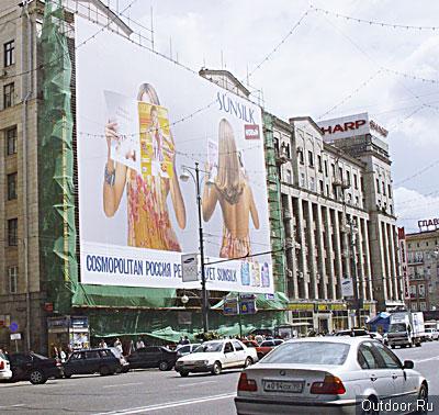 Sunsilk на книжном магазине «Москва»News Outdoor Russia смонтировала новую рекламную конструкцию на Тверской, главной улице Москвы. Виниловая строительная сетка с рекламой Sunsilk общей площадью 600 кв.м. расположена на здании книжного магазина «Москва». Размещение проводится по заказу агентства Initiative Media для клиента Unilever. ![]() Outdoor.Ru |