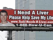 Необычный способ найти донора для больного раком печени техасца нашла его семья, сообщает Reuters. Близкие 32-летнего Тодда Крампитца (Todd Krampitz) использовали средства массовой информации, а также наружную рекламу, чтобы привлечь внимание к проблеме Тодда и найти возможного донора.