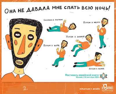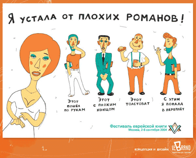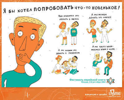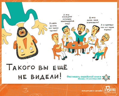 Агентство Lebrand Creative разработало концепцию рекламной кампании "Фестиваля еврейской книги"Агентство Lebrand Creative разработало концепцию рекламной кампании "Фестиваля еврейской книги". Фестиваль пройдет в Москве во время ежегодной Международной книжной ярмарки. Перед специалистами компании была поставлена задача "добиться того, чтобы на фестиваль пришли представители всех национальных групп. В агентстве была разработана серия сюжетов, в которых любовь к интересным книгам подана в ироничном ключе. Серия легла в основу дизайна рекламных открыток, буклетов, плакатов, афиш, постеров, книжных закладок и макетов в СМИ. В дополнение для Фестиваля был разработан логотип, фирменный стиль и комплект необходимых рекламно-информационных материалов. ![]() ![]() ![]() ![]() ![]() ![]() |
