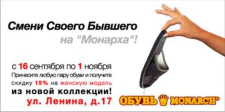 "Смени Своего Бывшего…" или "Новый друг - лучше Бывших двух!С 1 сентября на наружных щитах Москвы, Санкт-Петербурга и многих других крупных городов России появились банеры "Смени Своего Бывшего на Монарха!". Под таким девизом стартовала рекламная кампания сети магазинов "Обувь Monarch", которая насчитывает более 150 магазинов. Разработку креативной концепции и проведение рекламной кампании, в результате тщательного "кастинга" компания "Пальмира" доверила креативному агентству "ADVERTINO". С 16 сентября в поддержку рекламной кампании во всех городах, где имеются магазины Монарх начнется промоакция. Каждому, кто до 1 ноября принесет любую пару обуви "бывшего употребления" предоставляется скидка 15 % на женскую модель из новой коллекции "Осень-Зима 2004/2005". Мероприятие связано не только с поступлением новой осенне-зимней коллекции обуви, но и с некоторыми изменениями в имиджевой политике торговой марки "Монарх", которой владеет компания "Пальмира". ![]() ![]() |