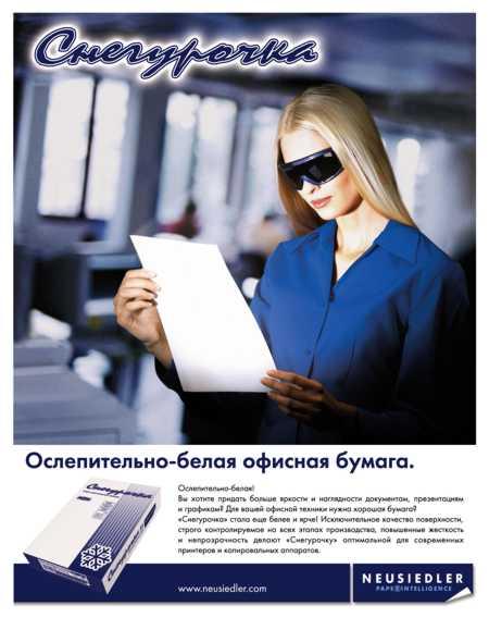 Scholz&Friends Moscow разработало рекламу для компании NeusiedlerРекламное агентство Scholz&Friends Moscow разработало рекламу для компании Neusiedler, одного из крупнейших производителей офисной бумаги в России. Основу рекламной кампании составил новый макет для бренда "Снегурочка". "Снегурочка" - бумага С-класса, приближенного к европейскому уровню. Основная цель новой кампании - подчеркнуть улучшенное качество бумаги, которое выражается, в частности, в белизне. Полномасштабная кампания проводится с сентября 2004 года, включая рекламу в прессе и на наружных носителях в Москве, Санкт-Петербурге и 11 других городах России. В рамках кампании в прессе в сентябре задействованы следующие издания: "Товары и цены", "Канцелярское обозрение", "Сибирь", "Трансаэро". Продолжительность кампании в наружной рекламе: сентябрь-октябрь. Арт-директор: Андрей Филатов. Копирайтер: Лариса Боруздина ![]() ![]() |