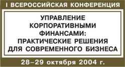 I Всероссийская конференция «Управление корпоративными финансами: практические решения для современного бизнеса» пройдет 28–29 октября28-29 октября пройдет I Всероссийская конференция «Управление корпоративными финансами: практические решения для современного бизнеса», организованная журналом «Управление корпоративными финансами» ИД Гребенникова. Цель конференции – рассмотреть финансовые аспекты повышения конкурентоспособности российских компаний, а также конкретные проблемы, связанные с финансовым управлением предприятием, и возможные пути их решения. Конференция рассчитана на директоров, финансовых руководителей, сотрудников аналитических отделов, аудиторов и менеджеров всех уровней управления. Ожидаемое количество участников — более 100 представителей из разных регионов России. Программа конференции ДЕНЬ 19.00–10.00 Регистрация участников конференции. Кофе. 10.00–10.15 Приветственное слово к участникам конференции. Пленарное заседание 1. Инвестиционный климат и практика управления корпоративными финансами в российских компаниях
