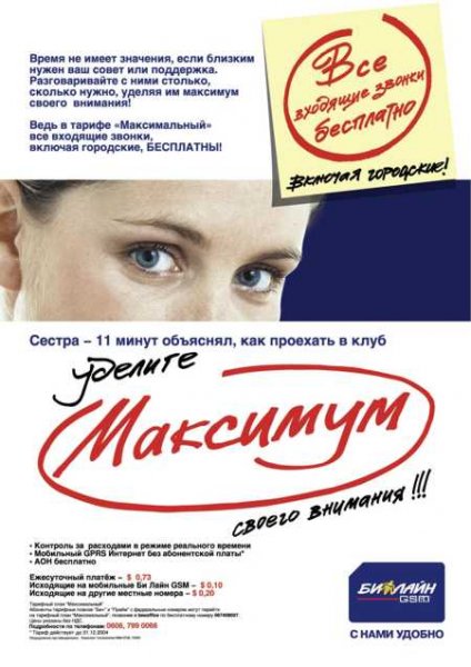 Уделите максимум своего внимания!.. "Вымпелкому""Вымпелком" проводит рекламную кампанию Компания "Вымпелком" проводит рекламную кампанию на TV, в наружной рекламе и прессе. Новая концепция разработана компанией BBDO. В съемках ролика принимали участие: Креативный директор - Андрей Клепач Арт-директор - Андрей Клепач, Дмитрий Нисевич Копирайтер - Михаил Косолапов, Яна Ванинская, Алина Тсховребова Режиссер - Алексей Розенберг Над макетами работали: Арт-директор - Андрей Клепач, Дмитрий Нисевич Копирайтер - Михаил Косолапов. ![]() ![]() ![]() ![]() ![]() ![]() |