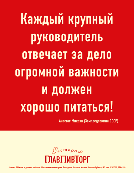 ЛОГВИНDESIGN для "ГлавПивТорга"Студия ЛОГВИНDESIGN разработала макет рекламной полосы ресторана "ГлавПивТорг" специально для размещения на второй стороне обложки журнала БОСС, который предназначен для адресной рассылки директорам предприятий, менеджерам и госчиновникам. ![]() |