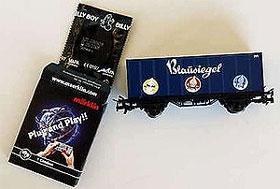 Компания Maerklin, имеющая уже 145 лет опыта производства всевозможных видов игрушечных железных дорог и вагончиков, выдумала новую игрушку: маленький грузовой вагончик синего цвета будет «перевозить» презерватив с логотипом Blausiegel (крупнейший немецкий изготовитель презервативов).
