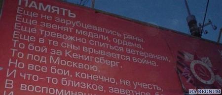 Калининградских ветеранов поздравили с Днем Победы, объявив их "спившимися"В Калининграде разразился скандал вокруг поздравительных билбордов, посвященных 60-летию штурма Кенигсберга. Как передает корреспондент ИА REGNUM, мэрия Калининграда поручила городскому рекламному агентству изготовить социальный рекламный щит со стихотворением калининградского поэта А. Ельцова "Еще не зарубцевались раны". Однако, когда билборды были установлены практически на всех главных магистралях города, выяснилось, что в третьей строке стихотворения вкралась досадная орфографическая ошибка, которая полностью изменила смысл воззвания. Вместо фразы "еще тревожно спится ветеранам...", на щите читается - "...еще тревожно спиться ветеранам". ![]() Опечатка вызвала гневный отклик Калининградского городского совета ветеранов Великой Отечественной войны. "За 2 дня до 60-летия штурма Кенигсберга так над нами издеваться, чуть ли не обвиняя в пьянстве", - сказал корреспонденту ИА REGNUM один из ветеранов. Как сообщила ГТРК "Калининград", в рекламном агентстве, изготовившим билборд, уже признали, что допустили ошибку. В настоящее время специальная бригада выехала заклеивать слово "спиться" стикерами (см. фото). ![]() REGNUM.RU |