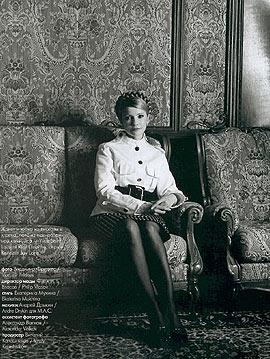 Юлия Тимошенко пошла на беспрецедентный для украинской политики шаг – сфотографировалась для женского журнала ELLE. Позирование сопровождалось интервью, которые Тимошенко после революции редко кому дает.Четыре года назад во время интернет-конференции в "Украинской правдi" Тимошенко спросили, где бы она с большим желанием появилась на обложке: в журнале "Playboy","Натали" или "Time"? Тимошенко тогда ответила, что "для настоящей женщины лучший выбор – "Плейбой", но я не дотягиваю до этих стандартов". "Я просто пытаюсь никогда не предлагать обществу неинтересной информации. Хотелось бы работать в своем амплуа. Потому – "Time". Но учитывая уровень "Time", хотелось бы иметь другую амбицию – пусть хоть в "Киевских ведомостях" напечатают положительно, как следует!". Как видно, в 2001 предложение относительно "Натали" Тимошенко вообще проигнорировала. Может, она тогда не любила женские журналы по определению – или уровень у этого киевского издания был не тот. Но, как бы то ни было, с тех времен "Киевские ведомости" писать о ней положительно не начали, "Time" регулярно вспоминает ее фамилию, а фото Тимошенко в фиолетовом платье вышло на обложке майского номера ELLE. То, как выглядит Тимошенко, может восприниматься по-разному. Одни видят холодный взгляд. Другие – легкую улыбку. Глаза сильно подведены, но ей это идет. В ушах дизайнерские сережки от Chanel, Kenneth Jay Lane и Ultima Edizione. Последние выглядят как шестикаратовые бриллианты, но в действительности являются цирконием – очень дешевым как для второго человека в стране – правда, в исполнении известного в Европе дизайнера ювелирных изделий из серебра. Хотя съемки происходили в помещении, ее почему-то подали не только в костюме, но и в плаще. Как рассказала заместитель редактора украинского издания ELLE Мирослава Макаревич, инициатором публикации фото и интервью с Тимошенко выступило западное руководство этого международного журнала.