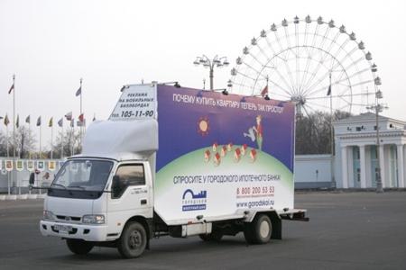 Ипотека идет в регионыГородской Ипотечный Банк открыл филиалы в Самаре и Нижнем Новгороде. Для рекламы услуг ипотечного кредитования впервые выбран новый технологичный носитель - мобильный биллборд, предоставленный РА "Грейс Медиа". Продолжительность рекламной компании с 11 апреля по 10 мая этого года. Размещение проходит с 12:00 до 20:00, в темное время реклама освещается наружным освещением. GPS-система позволяет клиенту производить контроль за размещением из головного офиса в Москве. ![]() |
