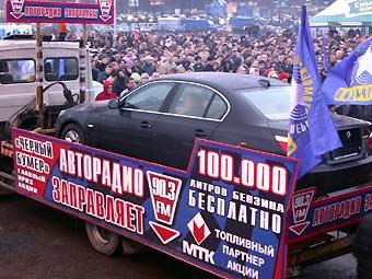 "Авторадио" разыграло "Черный бумер"Вечером 23 апреля в московском торговом комплексе "Три кита" состоялся финал рекламной акции "Авторадио" - розыгрыш "Черного бумера" - автомобиля BMW525i. Этому предшествовала раздача в течение месяца ста тысяч литров бесплатного бензина, предоставленного Московской топливной компанией. Его можно было получить на двух автозаправочных станциях Москвы: с 10:00 до 11:00 утра на Сущевском валу заправляли до полного бака водителей, способных продемонстрировать артистические таланты, а с 11:00 до 20:00 на случайно выбранной заправке МТК наливали 10 литров просто так. Вместе с бензином раздавались лотерейные билеты. Розыгрыш производился публично на глазах всех желающих. Поскольку количество участников, по оценкам "Авторадио", составило около 15 тысяч человек, местом его проведения был выбран торговый комплекс, расположенный неподалеку от МКАД. По оценкам очевидцев, количество автомобилистов, явившихся на церемонию действительно оценивалось тысячами. После того, как из барабана был вытащен выигрышный номер, победителю - москвичу Виктору Ефремову вручили ключи от машины и большую бутылку шампанского, из которой он немедленно окатил свое приобретение. ![]() LENTA.RU |