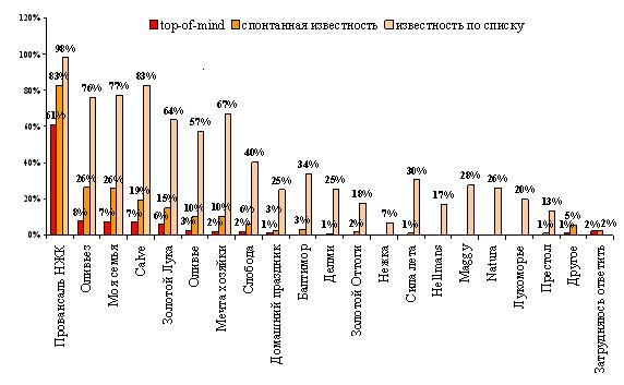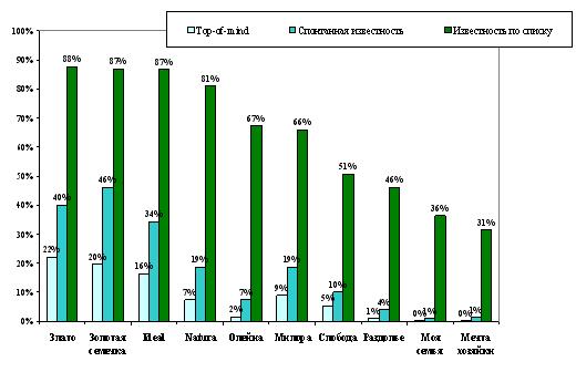 Рисунок 2. Показатели известности различных марок растительного масла 2005 г.(Открывается в новом окне)