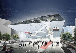 Укротители линииАндрей Субботин В столице на очередной ярмарке "Арх-Москва" дали мастер-классы сразу два живых классика мировой архитектуры – Даниэль Либескинд и Заха Хадид. Если ещё кто-нибудь попробует меня смять – вызову милицию, – грозила девица, сдерживавшая толпу на входе в конференц-зал ЦДХ. Не помогло, смяли... Ажиотаж был вызван десантом первых персон мировой архитектуры на «Арх-Москву». На жаркий полдень субботы 11 июня пришлись сразу два события: презентация Даниэля Либескинда, которому поручено возвести на месте башен-близнецов новый деловой центр, и ток-шоу Захи Хадид, первой женщины – призера Притцеровской премии (архитектурного «Оскара»). Оригинальность архитектуры есть отражение заложенных в ней идей. Если сооружение банально, значит, архитектору просто нечего сказать, – этот тезис Даниэля Либескинда стал ключиком к его презентации под провокативным названием «Будни великих строек». Архитектору было что сказать, и к тому же он знает, как говорить не только в камне, но и на публике. Вечная беда таких презентаций в отсутствии «перевода» с архитектурного на человеческий: мало кто из зодчих опускается до диалога с простыми смертным на языке последних. Например, деконструктивизм с его парадоксальным сочетанием пространств и переплетением осей кажется обычному глазу наркотической ломкой, в которую угодил свихнувшийся от собственной унылости модернизм. Кажется, что классическую «решетку» здания корежит, крутит, ломает пополам. Вероятно, Либескинд давно это понял. За располагающим «здравствуйте» и упоминанием о своих российских корнях последовало объяснение его построек на пальцах. И деконструктивизм вдруг предстал вполне человечным стилем, поддающимся чтению, анализу и пониманию. Дикий зигзаг берлинского Jewish Museum (очертаниями напоминающий молнию с транспаранта «Не влезай - убьет!») оказался лабиринтом с идейным обоснованием каждого изгиба: тупик исторической трагедии, лестница, выведшая кого-то в настоящее, галерея, связующая с новым Берлином. В искривлении миланского здания-цилиндра нарисовался чертеж да Винчи: архитектор просто закрутил легендарный леонардовский круг со вписанной человеческой фигурой до скорости мелькания спиц в велосипедном колесе, и из этого воображаемого движения родилась форма. Либескинд очень хотел вывести главную башню нового ВТЦ в Нью-Йорке на высотную отметку разрушенных башен (террористам назло), но финансово это было сложно. Тогда появился закрученный ассиметричный шпиль, перекликающийся с факелом у статуи Свободы в поднятой руке. И верно, в видеореконструкции силуэт, статуя и Empire State Building оказались в связке. Мкастер сказал, что не собирается перегружать здание хай-тек-начинкой: все равно в катастрофу она не сработала, отметил он с фирменной иронией. Либескинду нравится цитировать Черчилля: «конфликты будут всегда», «конфликт может быть средством достижения мировой гармонии». Родившийся в Польше, он долго скитался по США и Израилю, успев превратиться из профессионального музыканта в архитектора и написать автобиографию с подзаголовком «Приключения в архитектуре и жизни». Славится сарказмом. Например, входом в его грандиозный Музей конфликтов, что в Англии, служит простая дверь примерно метр на два. Почему? Оказывается, в историю надо входить скромно, ведь все мы – при