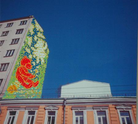Жилой дом на Чистых прудах В управе Басманного района столицы художникам пообещали предоставить свободные "площади", правда, предварительно посоветовавшись с архитекторами. - Дело хорошее, - считает глава управы Басманного района Елена Васина. - Думаю, в следующем году совместными усилиями идею удастся воплотить в жизнь. Но надо понимать, что фасады - это не ракушки. Впишется ли тематический рисунок в городской ландшафт, не испортит ли историческую панораму? Воплощения в жизнь ждет еще одна идея украшения Москвы. У светодизайнеров из мастерской архитектурного освещения при ГУП "Моспроект-3" имеются несколько концепций праздничного освещения, которое позволит переосмыслить столичные пейзажи. - Для наглядности мы разработали компьютерный коллаж, - рассказал "Известиям" руководитель мастерской Николай Щепетков. - Российский триколор при помощи мощных прожекторов или сканирующих лазерных лучей взмоет в небо над колокольней Ивана Великого. Световую пирамиду, опирающуюся на кремлевские башни, можно "построить", к примеру, под Новый год. А на заводские трубы и градирни ТЭЦ можно проецировать цветные картины - от "мрачного" Врубеля до "светлого" Васнецова. У "игроков-3000" свои планы на градирни и трубы. Просто разрисовать их чем-нибудь экологичным - птицами, например.