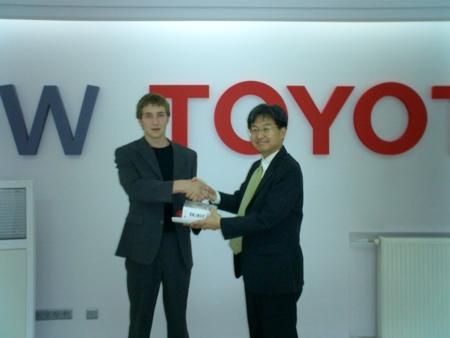 Компания "Тойота Украина" огласила лучшего журналиста мая в конкурсе для журналистов "Таета или Toyota?"Лучшим журналистом мая в конкурсе для журналистов "Таета или Toyota?" назван Михаил Вовк, "Инвест Газета". Церемония награждения состоялась 21 июня в офисе официального дистрибьютора автомобилей Toyota на Украине, компании "Тойота Украина". На церемонии присутствовали первые лица компании: Атцуя Кондо, генеральный директор, и Роман Кузьмин, генеральный менеджер департамента продаж и маркетинга. Остальные места в мае распределились следующим образом: 1. "Инвест газета" 2. "Экономические известия" 3. Autoconsulting.com.ua 4. Autocentre.ua 5. Autoua.net 6. "Эксперт" 7. "За рулем Украина" 8. "Авто Центр" и "Наш досуг" 9. Autonet.com.ua 10. "Бизнес" 11. "Авто Базар" 12. "Авто Мир" Всего для участия в конкурсе на данный момент зарегистрировалось 22 издания. Все работы участников оцениваются, исходя из количественных и качественных критериев. Напомним, что конкурс стартовал 18 мая и продлится до 5 октября. Основная цель конкурса - объяснить потенциальному покупателю автомобиля Toyota преимущества покупки у официального дилера, а также содействовать более глубокому и активному информированию общественности о развитии мировой автомобильной индустрии на примере компании Toyota. Дополнительная информация по телефону: +38 044 461-79-09 ![]() |