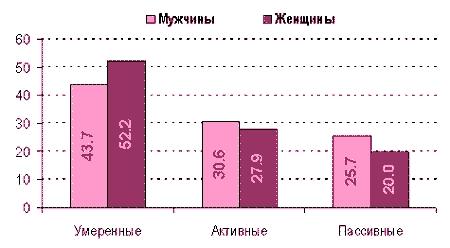 Рынок мороженого. Потребительские предпочтения жителей КазахстанаЧто может быть желанней мороженого в жаркий летний полдень? Этот продукт занимает важное место в потребительских предпочтениях жителей Казахстана. По данным исследования MMI* (сентябрь' 04) 77,9%** казахстанцев употребляют данный продукт. Всех положительно ответивших респондентов по частоте потребления продукта можно разделить на активных, умеренных и пассивных. Доля активных потребителей невелика, хотя именно эта категория обычно формирует продажи любой продукции. Активную группу потребителей составляют те, кто покупает мороженое раз в неделю и чаще - 30,6% мужчин и 27,9% женщин. Пассивные потребители, как правило, покупают его раз в месяц и реже - 25,7% мужчин и 20,0% женщин. Основная масса потребителей приобретает мороженое один - четыре раза в месяц - 43,7% мужчин и 52,2% женщин (диаграмма 1). Диаграмма 1. Частота потребления мороженого, 2004г.