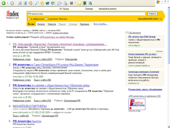 PR-Агентство "Зелёный остров" использует методику "информационного ускорения"Автоматизированные системы крупнейших поисковых порталов Яндекс и Апорт вывели на первые строки по ключевому запросу "PR-Агентство" - компанию "Зелёный остров" (www.gi.ru). Это стало результатом PR-кампании, инициированной специалистами агентства… "для агентства". Не секрет, что многие консалтинговые компании, предлагая клиентам услуги, сами оказываются в положении "сапожников без сапог", полностью выкладываясь на реализации проектов заказчиков и жертвуя собственным продвижением. страница Яндекс (Открывается в новом окне)