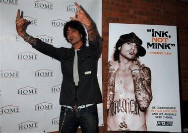 Рокер Томми Ли стал лицом новой кампании PETA"Ink, not mink" - "Чернила, а не норка" - под таким девизом Томми Ли снялся на плакате PETA (People for ethical treatment of animals). В поддержку лозунга рокер демонстрирует свою новую татуировку. Презентация новой программы с участием Томми Ли состоялась 15 августа в нью-йоркском клубе Manhattan, который объявил политику, запрещающую в клуб вход в шубах. Как говорит Томми Ли, "много исполнителей носит мех, они думают, что это символ положения в обществе. Но это не в счет - когда я смотрю на меховые шубы, я вижу только убитых животных", сообщает peta.org. ![]() |