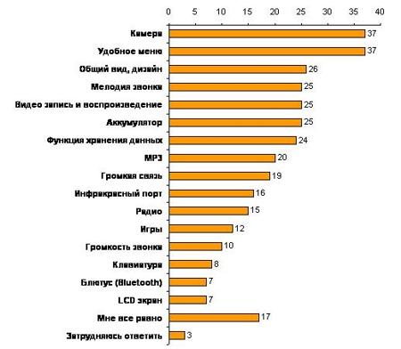 Romir провел исследования о критериях покупки сотовых телефоновМобильные телефоны, оснащенные функциями фото- и видеосъемки, активно вытесняют традиционные камеры с рынка, что, в первую очередь, сказывается на снижении объема продаж последних. Исследования холдинга ROMIR Monitoring на рынке мобильной связи подтверждают эту тенденцию - одним из главных критериев при покупке нового телефона для "мобильных" россиян является наличие в аппарате встроенной камеры. Последняя волна исследования была проведена в июле текущего года. В опросе приняли участие 1600 человек от 18 лет и старше, в более чем 100 городах и населенных пунктах России. Выборка репрезентативна для взрослого населения России. Статистическая погрешность не превышает ±3%. В ходе исследования респондентам был задан вопрос, намерены ли они в ближайшие 12 месяцев приобрести мобильный телефон, или купить новый аппарат. 18% опрошенных ответили на этот вопрос утвердительно. Отрицательный ответ дали 82% респондентов. Заметим, что среди тех, кто планирует купить новый мобильный телефон в ближайший год мужчин несколько больше, чем женщин - 21% против 16%. Каждый третий россиянин от 18 до 24 лет также сказал, что намерен купить новый телефон. Среди респондентов от 25 до 34 лет такой вариант ответа дал каждый четвертый опрошенный. Чаще, чем в среднем по выборке о желании приобрести или поменять мобильный телефон говорили жители Сибирского федерального округа - 26%, а также россияне, проживающие в средних городах с населением от 100 до 500 тысяч человек - 23%. Респондентам, которые планируют приобрести мобильный телефон/купить новый, также был задан вопрос: Пожалуйста, выберите наиболее важные функции, которые Вы стали бы учитывать при покупке мобильного телефона? (%) Ответы на него распределились следующим образом (поскольку респонденты могли указать несколько вариантов ответа, то итоговая сумма может быть не равна 100%): ![]() Как показали результаты исследования, наиболее востребованными функциями мобильного телефона являются встроенная камера и удобное меню. Такого мнения придерживаются по 37% россиян, планирующих в ближайшее время купить новый мобильный телефон. Среди респондентов в Южном федеральном округе о встроенной в телефон фотокамере мечтает каждый второй опрошенный - 48%. А вот для жителей Северо-Западного округа эта функция важна значимо меньше - 17%. Об удобстве меню в новом телефоне чаще, чем в среднем по выборке говорили жители Южного, Уральского и Сибирского федеральных округов - по 43-44%. В ходе опроса каждый четвертый респондент (26%) из тех, кто собирается в ближайший год поменять телефон или приобрести новый, среди наиболее важных функций назвали дизайн аппарат, его внешний вид. Еще четверть опрошенных (25%) к важным функциям отнесли мелодию звонка. Причем среди респондентов Северо-Западного, Уральского и Сибирского регионов об этом сказали 31-32% опрошенных. Еще 25% респондентов сказали, что хотели бы, чтобы их новый мобильный телефон имел функцию видеозаписи и воспроизведения. Среди жителей Южного и Приволжского округов этот показатель достигает 31%. А вот в Северо-Западном регионе о функции видеозаписи упомянули только 3% респондентов. Зато каждый второй опрошенный в этом регионе (45%) из тех, кто планирует поменять телефон, сказал, что самым главным достоинством нового мобильного телефона являетс