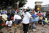 Распродажа – вещь хорошая, но зачастую попытка «оторвать» ту или иную вещь подешевле заканчивается печально. Более 12 тыс. американцев устроили давку в одном из магазинов Ричмонда (штат Вирджиния), объявившего распродажу компьютеров. Машины уходили по 50 долларов. Желающих приобрести недорогой ноутбук оказалось слишком много. На тысячу машин претендовало сразу 12 тыс. покупателей. В результате, когда двери магазина открылись, туда устремилась многотысячная толпа. Те, кто пошустрее, сбивали с ног менее проворных. Один мужчина даже признался, что от конкурентов он отбивался принесенным из дому складным стульчиком. А кто-то пытался проехать сквозь толпу на машине. Десятки человек получили серьезные травмы и были госпитализированы.//