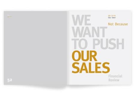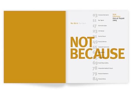 Креативноe бюро "Дизайн Депо" разработало годовой отчет для компании SUN InterbrewЭто уже третий годовой отчет, выполненный для гиганта пивной отрасли с соблюдением основного правила - "Никаких правил!". В этом году сотрудники компании, от президента до простого служащего, на страницах отчета искренне признаются, почему они потребляют собственный продукт. Ими движет не желание угодить начальнику или необходимость следования корпоративной этике, а любовь. Любовь к своей работе, к качеству, к хорошему пиву, которое на любой вкус и цвет они и производят. В результате дошло до того, что во время съемки все пиво было выпито и на страницы отчета попали только бокалы из-под пива. ![]() ![]()