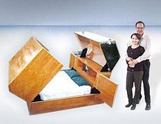 "В случае чего вам не придётся сломя голову нестись в убежище, вы уже находитесь в нём", — говорит 47-летний инспектор паровых котлов из Виржинии Джеффри Воллинг (Jeff Walling). Это он в начале 2001 года изобрёл "Квантовую спальню" (Quantum Sleeper), назвав её так, по-видимому, для красоты. Дело было так. С сыном и дочерью Воллинг гулял по Майами, глазел на роскошные особняки и вдруг спросил себя: а на что я потратил бы кучу денег, если б был богачом? В ответ воображение инспектора выдало кровать с крышкой. Пока до сверхзащищённой спальни не додумался кто-нибудь другой, Джефф в августе 2001-го обратился в патентное ведомство США (USPTO) с просьбой закрепить за ним авторство. Тишину длящегося по сей день ожидания патента нарушило 11 сентября — Воллинг понял, что "кровать должна быть чем-то большим, чем запирающийся на ключ ящик для богатых детей". ![]() Единственный прототип сделан из дерева. Для пуленепробиваемых поликарбонатов нужны инвесторы (изображение с сайта qsleeper.com). Джефф решил, что необходимо сделать спальное место на случай ураганов, торнадо, наводнений, применения отравляющих веществ, газов, нападения грабителей, террористов и так далее. Должна быть кровать, "защищающая от всего". Мозговой штурм, произошедший при участии детей Воллинга — Джона и Джессики — породил "самое безопасное место отдыха, которые вы когда-либо имели" (смотрите защищённое копирайтом фото New York Times). "Quantum Sleeper — это система безопасности высочайшего уровня, разработанная для максимальной защиты в различных враждебных окружающих средах". И вот что имеется в "квантовой усыпальнице": • Стальная рама с пуленепробиваемым покрытием из поликарбоната; • Вентиляция с биохимическими фильтрами; • Средство защиты органов дыхания; • Независимые системы управления; • Механизм закрытия убежища в чрезвычайной ситуации; • Зеркальное покрытие над головой, позволяющее видеть через него только с одной стороны – изнутри. • Датчики приближения, дыма, движения и другие сенсоры; • Системы аварийной связи; • Система, собирающая звуки снаружи и усиливающая их; • Воздухо— и водонепроницаемость; • Возможность перехода на внешнее и дистанционное управление; • Резервные батареи; • Система туалетных принадлежностей. Последняя система из списка интересует многих, но подробностей о ней никаких нет. Да, ведь есть и "развлекательные опции". К ним относятся CD и DVD-плееры, компьютер и почему-то — микроволновка с холодильником. Для, так скажем, активной защиты обитатели могут оснастить Quantum Sleeper разбрызгивателями слезоточивого газа, автоматизированными руками и каким-нибудь вооружением.