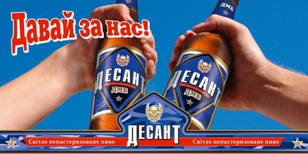 На украинский рынок выведена новая торговая марка пива "Десант" от компании "Оболонь" и агентства "Брендсторм"ТМ "Десант" была выведена на украинский рынок в конце этого. ЗАО "Оболонь" решило вывести на рынок новый бренд, поскольку лидирующая на пивном рынке Украины и по объемам и по знанию торговая марка "Оболонь" слишком долго была единственной маркой в бренд-портфеле компании, которая "закрывала" все сегменты рынка. В прошлом году был выпущен новый бренд Hike Premium Beer, его основная задача - занять лидирующие позиции в сегменте "средний -". Следуя логике, ТМ "Десант" должна стать лидером в сегменте "средний" до конца 2006 года. Линейка ТМ "Десант" состоит из трех сортов пива, разработанные совместно с клиентом: светлое легкое пиво - "ДМБ", светлое пиво, типа лагер - "Комбат", светлое крепкое пиво - "Спецназ". В рознице пиво появилось в начале августа и стоит от 1,50 до 1,90 гривен. Разработка ТМ "Десант" велась рекламно-маркетинговой группой "Брендсторм" четыре месяца. Был проведен ряд исследований пивного рынка Украины, благодаря которым четко определились задачи, которые стояли перед группой "Брендсторм": -Разработать бренд с платформой позиционирования, вкусы пива, линейку. -Создать единый фундаментальный бренд-стиль, используя название "Десант". -Разработать и провести рекламную кампанию, направленную на узнаваемость и знание марки. - Креативный департамент "Брендсторм", совместно с клиентом, разработал бутылку и этикетки для линейки ТМ "Десант". Их дизайн выполнен в стиле "милитари" с использованием оригинальных бренд-цветов. Для "Комбата" - зеленый, "ДМБ" - синий и "Спецназа" - серый. Крепость пива обозначается как военными названиями, так и военными звездочками (по иерархии): "ДМБ", т.е. дембель (начальный уровень) - одна звёздочка, у пива "Комбат" (второй уровень) - две звездочки, у крепкого "Спецназа" (третий уровень) - три звёздочки. На первом этапе работы с маркой в задачи "Брендсторм" входило вложить в сознание потребителя целостный образ продукта, донести основную концепцию позиционирования: "Давай за нас!", эмоцию сплоченности, эмоционального подъёма от потребления пива "Десант". Важно было подчеркнуть совокупность психологических черт, общих для собирательного образа потребителя пива "Десант": -"чувство локтя" -"серьезное отношение к слову и делу" -"способность отстоять принципы чести, понятий" -"тяга к душевному общению в кругу своих". Идея ролика принадлежит Василию Танасийчуку, руководителю креативного департамента "Брендсторм". Ролик, который сегодня демонстрируется на ТВ, был отобран из четырех представленных вариантов как наиболее ясно и оригинально отображающий идею позиционирования. Он эффектно знакомит потенциального потребителя с названием и пивом "Десант", светлого сорта: "ДМБ". В нем демонстрируется бутылка, этикетка и контрэтикетка нового продукта, бутылки "Десанта" десантируются с неба на парашютах, что просто и конкретно доносит месседж заключенный в названии пива. Рекламным слоганом стали слова: "Пиво "Десант": Давай за нас!". Что касается, оригинальной мелодии к ролику, то она выбиралась из нескольких, представленных на тендер. Ролик "Десанта" выходит с 24 августа по конец сентября включительно на украинских каналах: "Интер", "Энтер-фильм", "Новый канал", ICTV, СТБ, М1, ТЕТ, "Тонис", ТРК "Украина". Состав творческой группы: "Брендстормфилм" Сцена