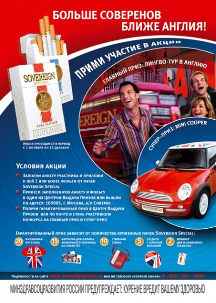 Агентство коммуникаций Magic Box произвело адаптацию креативной концепции рекламной кампании английских сигарет Sovereign Special, производимых компанией Gallaher Liggett-DucatВ дополнение к Sovereign, который позиционируется как традиционный английский бренд, новый Sovereign Special должен был предложить "английскую тему" более молодой аудитории. Поэтому стереотипные образы традиционной Англии: БигБэн, даблдеккеры, королевские гвардейцы и телефонные будки уступили место образам молодых счастливых людей, весело проводящих время на улицах ночного Лондона. Агентством был предложен слоган: "Новая английская тема", отражающий суть позиционирования Sovereign Special. Иными словами, Sovereign - это "традиционная английская тема", а Sovereign Special - "новая" и менее консервативная. "Новая английская тема" была реализована в виде макетов для наружной рекламы, прессы, POS-материалов, полиграфической и сувенирной продукции. Кампания проходит с сентября по декабрь 2005 года. В настоящее время агентство готовит промоушн-кампанию для поддержки запуска нового саббренда в Москве и Санкт-Петербурге. Состав творческой группы: Копирайтер: Александр Неруш Арт-директор: Алексей Исаков Эккаунт-менеджер: Галина Абрамкина ![]() ![]() |