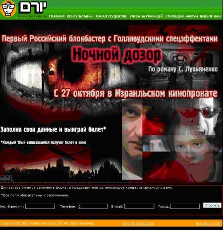 Promo Interactive продвигает "Ночной дозор" в ИзраилеИзраильский филиал агентства инновационного маркетинга Promo Interactive выиграл тендер на продвижение блокбастера "Ночной дозор" в Израиле. "Ночной дозор", стартовавший в израильском кинопрокате в конце октября, вызвал небывалый ажиотаж не только среди русскоязычных жителей, но и среди коренных израильтян. Фильм идет в трех кинотеатрах страны на русском языке с субтитрами на иврите. Агентство Promo Interactive Israel организовало PR-поддержку фильма в электронных и печатных СМИ, а также в сети Интернет на крупных новостных и развлекательных порталах. В рамках кампании состоялись викторины с розыгрышем билетов на популярных радиостанциях. Кроме этого, Promo Interactive Israel организовало пресс-показ "Ночного дозора" для израильских СМИ. Supervision проекта "Ночной Дозор" в Израиле - Маша Дашкова, account manager - Анна Кайнер, PR-manager - Мария Горина. ![]() ![]() ![]() |
