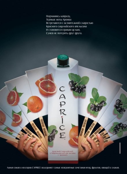 Стартовала новая рекламная кампания CapriceГК "Нидан" в ноябре запустила новую рекламную кампанию своего премиального продукта - соков и нектаров Caprice. Рекламная кампания стартует на фоне осенне-зимнего сезона, на который приходится основной объем продаж соковой продукции. Рекламная кампания по продвижению бренда Caprice включает в себя ротацию нового ролика в рекламных блоках "Первого канала", "России", СТС и "Рен-ТВ", а также размещение печатных макетов в глянцевых журналах Vogue, GQ, Elle, L'Officiel и Shape. Медиа-размещение осуществляется через агентство Smart Communications. Осенний старт рекламной кампании обусловлен сезонным ростом потребления соковой продукции. Линия соков и нектаров Caprice была выведена на рынок в 2004 году и сразу же завоевала популярность благодаря необычным вкусам и уникальным рецептурам приготовления. Caprice - это натуральные 100-процентные соки и нектары, состоящие из смеси соков различных фруктов - от привычных до экзотических. Сегодня линейка Caprice представлена следующими вкусами: "яблоко и барбадосская вишня", "томат с укропом, петрушкой и сельдереем"; "апельсин, вишня, банан с обработанным зерном", "ягодно-фруктовый", "морковь, апельсин, ананас с витаминами А, С, Е", "красный сицилийский и марокканский апельсины с аронией", "манго-маракуйя". Уникальные вкусы соков и нектаров Caprice идеально подходят всем, кто любит баловать себя необычными вкусовыми ощущениями, а благодаря содержанию витаминов и полезных веществ - и тем, кто следит за собой и придерживается здорового образа жизни. Новый ролик и созданные по его мотивам печатные макеты продолжают "восточную" стилистику рекламной кампании, ставшую визитной карточкой бренда Caprice. Хронометраж рекламных роликов - 30 и 20 сек. Состав творческой группы: Сюжет ролика под названием "Соперники" создан креативным агентством РА Instinct, Режиссер - Чжао Сяодин, Оператор - Ян Цсиншен Креативный директор - Людмила Баушева, Копирайтер Евгения Бабиор, Стратег - Михаил Чопоров, Продюсер - Наталья Полякова. Продакшн-студии - Metrafilms (Москва) и Ginger (Китай). ![]() ![]() |