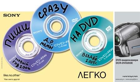 Рекламное агентство MLiner разработало креативную концепцию для DVD видеокамеры Sony DCR-DVD203EВ октябре текущего года компания Sony объявила тендер на разработку рекламной компании своего нового продукта - видеокамеры Sony DCR-DVD203E. Основные носители - щиты 3x6. Идея должна была продвигать всю линейку DVD видеокамер Sony и даже более того, сам формат DVD в видеокамерах Sony. Победителем стало рекламное агентство MLiner с креативной идеей "Пиши сразу на DVD". В настоящее время агентство занимается размещением рекламы на наружных носителях в Москве и Санкт-Петербурге. Автор идеи - Ярослав Сапрыкин, арт-директор РА MLiner. ![]() |