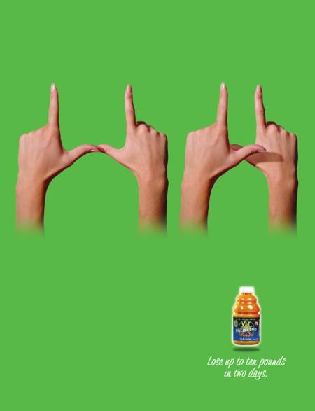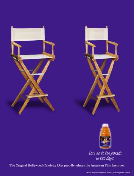 Реклама снова обещает: похудеть можно быстроЭто привычные "до" и "после". Только вместо "женщины в теле", превратившейся в стройную модель, в этой кампании используются другие единицы сравнения - ширина стула, размер луча. Слоган: "потеряй за два дня десять фунтов". ![]() ![]() ![]() |
