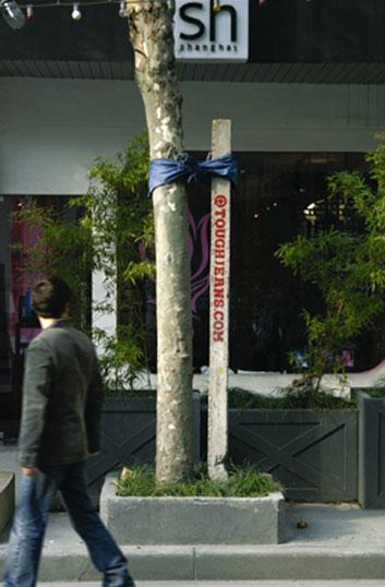 Реклама интернет-магазина из Гонконга, где продают джинсы, спортивную одежду рюкзаки, сумки под маркой Tough Jeans показывает - эти товары - крепкие и надежные и выдержат любую нагрузку.