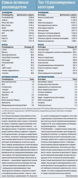 Самые активные рекламодатели (октябрь-ноябрь 2005 года)Эти ставшие уже привычными рейтинги в ближайшее время могут существенно измениться в связи с принятием нового закона "О рекламе". Во-первых, операторы наружной рекламы потеряют одну из крупнейших групп клиентов -- новая редакция закона "О рекламе" полностью запрещает рекламу табачных изделий в "наружке". На сегодняшний день, как видно из представленных таблиц, изгнанная с телевидения реклама сигарет занимает третье место в списке товарных категорий, рекламируемых на уличных щитах. Зато у товаров, рекламируемых в печатной прессе, может появиться новый лидер: авторы законопроекта предлагают ослабить действующий запрет на рекламу алкоголя, разрешив рекламировать спиртное в прессе. А вот распространенная сегодня скрытая реклама алкоголя будет практически невозможна -- законопроект предполагает полный запрет на рекламу зонтичных брэндов, если под теми же названиями производится хоть один запрещенный к рекламированию товар. Также депутаты намерены исправить недоработки, допущенные при принятии закона об ограничении рекламы пива, и разрешить ставить в телеэфир рекламные ролики "пивных" спонсоров спортивных соревнований. Это, безусловно, усилит позиции данного продукта, хотя и при существующих ограничениях пиво занимает вторую строчку в списке наиболее рекламируемых товаров на ТВ. А вот лидирующему на телевидении рекламодателю -- компании Procter&Gamble -- придется искать новые креативные решения для рекламы своих продуктов. Ни добрый стоматолог, ни педиатр с блаженной улыбкой больше не смогут рассказывать о достоинствах зубной пасты, крема или подгузников. Согласно новой редакции закона "О рекламе", использование образов медицинских и фармацевтических работников, отличительным признаком которых законотворцы посчитали наличие белого халата, в рекламе не допускается. Однако все эти изменения произойдут не ранее чем следующим летом, поскольку на прошлой неделе второе чтение законопроекта было перенесено на январь. Больше других заинтересованных участников рекламного рынка доработать законопроект требовало московское правительство, посчитавшее, что статьи о наружной рекламе сокращают права и полномочия местных властей. // ЮЛИЯ КУЛИКОВА ![]() Рейтинги составлены на основе данных компаний TNS Gallup Adfact (реклама на 19 телеканалах и в 290 газетах и журналах) и "ЭСПАР-Аналитик" (наружная реклама в Москве) за октябрь-ноябрь 2005 года. "КоммерсантЪ ВЛАСТЬ" |