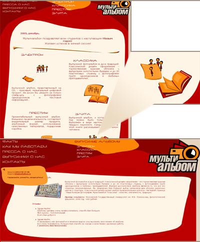 Студия "Интегрейт" открыла сайт проекта "Мультиальбом"По заказу Инновационного бюро Медиа-проект студией web-дизайна "Интегрейт" создан FLASH-сайт http://www.multialbom.ru. Сайт посвящен элитным выпускным альбомам. Заказчиком была поставлена задача создать сайт, бьющий по ушам, глазам и прочим частям тела, сайт, при первом взгляде на который у потребителя (в данном случае - будущего выпускника московского вуза) сразу возникло ощущение уникальности предлагаемых услуг. Дополнительным требованием являлось достижение высоких результатов в поисковых системах. Для реализации поставленных задач было решено создать редко применяющийся в практике web-студий (вследствие значительных технических сложностей) резиновый FLASH-анимированный дизайн и, используя DHTML, разместить на нем обычный HTML контент. В рамках работ по созданию сайта были разработаны несколько вариантов FLASH-мультфильмов по каждому из выпускных альбомов. Некоторые варианты сейчас можно увидеть на сайте, некоторые, в дальнейшем, появятся в сети. Совместно с ООО Контент-Про - крупнейшим российским контент-агентством, специализирующимся на подготовке web-контента, был проведен аудит поискового ядра и подготовлены тексты всех страниц сайта. ![]() |