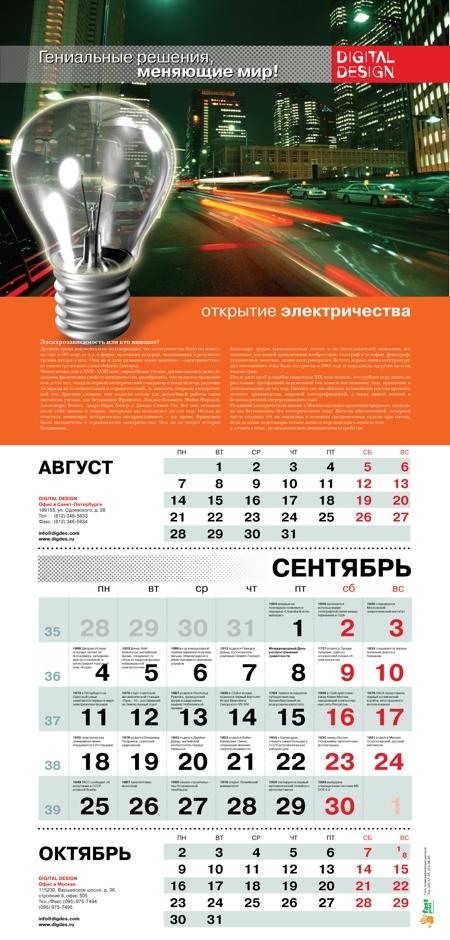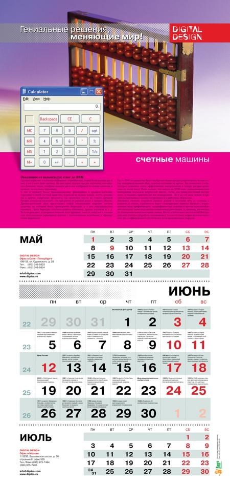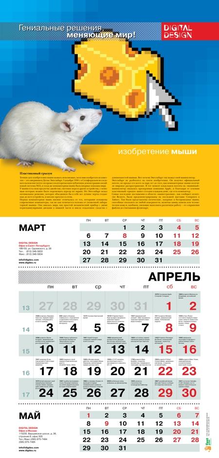 Компания Digital Design выпустила новогодний календарьDigital Design к новому году выпустила необычный корпоративный календарь, изготовленный силами собственных сотрудников, без привлечения сторонних агентств. Темой календаря этого года стали гениальные решения и изобретения человечества, изменившие мир! Такая тематика была выбрана не случайно - компания работает на рынке информационных технологий и каждый день совершает маленькие открытия, принимает важные решения, которые что-то меняют в этом мире. В новогоднем календаре компания собрала и представила 12 наиболее важных с ее точки зрения изобретений в мире информационных технологий и посвятила каждому месяцу по одному открытию. Например, в календаре освещаются такие темы, как изобретение мышки, колеса, электронной почты, открытие руды, нуля, электричества. Каждая тема месяца раскрывается в небольшом тексте, который сопровождается иллюстрацией, демонстрирующей дуализм описываемых открытий. Концепция дизайна заключается в противопоставлении старого и нового образа изобретения или же представляет устаревший и современный взгляд на одно и то же открытие. История изобретений богата и разнообразна. Каждый день и каждый час в мире кто-то совершает открытие, в чьей-то голове рождается гениальная идея. Продолжая тему открытий, компания подобрала на каждый день года одно событие или исторический факт, связанный с изобретениями в мире науки и техники. Другими словами, календарь Digital Design предлагает своим читателям оптимистичный стиль жизни - "праздник каждый день"! Например, в календаре отражены такие значимые для ИТ-индустрии даты, как день рождения Альберта Эйнштейна, презентация первой информационной системы, изобретение хронографа. Помимо печатного календаря компания распространила концепцию "праздник каждый день" и на корпоративный сайт, на главной странице которого помещен раздел "Наш календарь", где ежедневно появляется новая важная дата из мира гениальных решений и открытий. Рядом с датой находится индивидуальная для каждого события иллюстрация. ![]() ![]() ![]() ![]() ![]() ![]() ![]() ![]() ![]() ![]() ![]() ![]() ![]() |