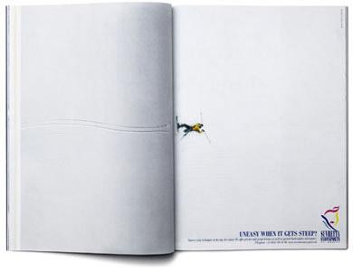 Надпись в правом нижнем углу гласит: «Uneasy when it gets steep?» («Нелегко, когда гора становится крутой»?) Подобный случай произошел с агентством Advico Young & Rubicam (Швейцария), когда оно работало над заказом одной из старейших европейских горнолыжных школ Suvretta. С 1925 года не одна тысяча людей получила здесь навыки экстремальной езды на сноуборде или горных лыжах. Можно не сомневаться, что с известностью и репутацией у Suvertta все в полном порядке. Тем не менее, как всякая уважающая себя крупная организация, Школа периодически проводит рекламные кампании, представляя новую услугу, методику или лишний раз, проповедуя высший класс своей инструкторской школы, которая сформировалась там за три поколения. Учитывая все эти характеристики, Advico Young & Rubicam создало, по их словам, «самый минималистичный в студийном портфолио рекламный проспект. Мы увидели в скучном белом развороте самые крутые швейцарские спуски, внесли еще пару изобразительных элементов, а в итоге оказалось, что лучше о Suvertta и не скажешь». KAK.RU |