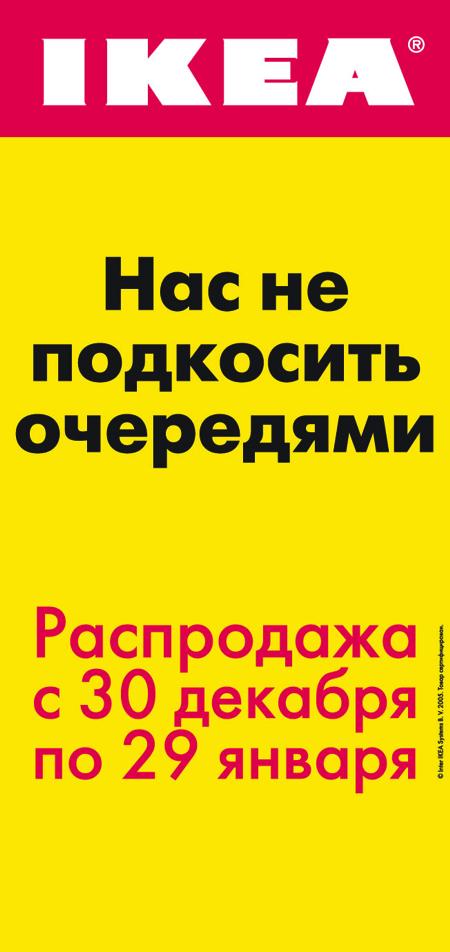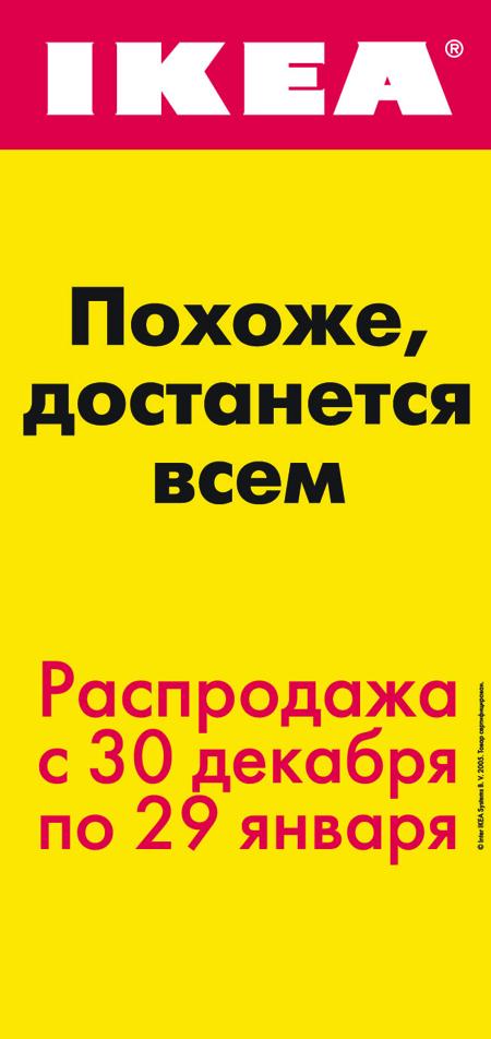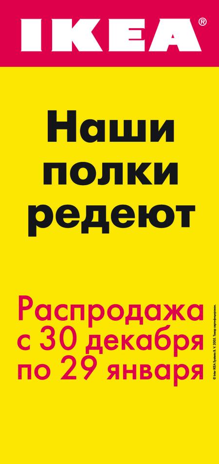 Агентство "Инстинкт" создало рекламную кампанию "ИКЕА"С 29 декабря во всех магазинах "ИКЕА" началась зимняя распродажа. В течение января акцию поддерживает рекламная кампания на ТВ и в наружке, созданная РА Instinct. Эфир проходит на каналах: "Первый", РТР, НТВ, ТНТ, СТС, "Домашний". Телевизионные ролики выполнены в новом ключе и по стилю отличаются от всех подобных проектов "ИКЕА". В новой коммуникации упор был сделан на создание общей атмосферы кампании, а не на конкретные товары, выставленные на распродажу. Таким образом, РА Instinct решило главную задачу кампании - выделиться на фоне рекламы распродаж других магазинов. Состав творческой группы: Ролики: "Перед боем" и "Во время боя" Хронометраж: 2х20сек Марка: "ИКЕА" Категория товара: Мебель и товары для дома Клиент: "ИКЕА" Агентство: "Инстинкт" Творческие директора: Роман Фирайнер, Ярослав Орлов Директор по стратегическому планированию: Михаил Чопоров Креативная команда: Мешков Алексей, Емельянов Виктор Эккаунтская команда: Юлия Баркова, Елена Горячева, Головина Дарья Продюсер агентства: Роман Жирных Продакшен: "Базелевс" Продюсер (продакшн - хауса): Алексей Борисов Режиссер: Том Гинс Оператор: Марат Адельшин ![]() ![]() ![]() |