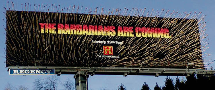 Здесь были варвары«The Brooklyn Brothers» — не братья и не из Бруклина, а творческий коллектив из Сиднея. Наотрез отказываются от именования «агентство», предпочитая самоназвание «креативное предприятие», именно потому, что, обращаясь к ним, клиенты встречают людей, с тысячей потрясающих идей в голове, а не отправляющих заказчика по длинной цепочке разнофункциональных исполнителей. Креативная мысль «братьев» не так давно, но все время успешно проходит проверку на свою состоятельность. Одним из последних выдающихся проектов молодого предприятия была промо-кампания американского исторического телеканала. «Мы не хотели делать из исторических героев мертвые постаменты - они же все когда-то были обыкновенными смертными», - поясняют они суть своего концепта. Так появилась серия принтов для цикла передач об Александре Великом размещалась на улицах Нью-Йорка, в метро и наземном транспорте. Иллюстрации к этой серии сделаны в совместном творчестве с CLK Design студией. Рекламные принты к передаче об исторических расследованиях на ура выполнили свои прямые обязанности в привлечении публичного внимания к новой программе. И, наконец, самыми заметными как идейно, так и масштабно, в рекламной линейке The History Channel стали громадные щиты, усеянные варварскими стрелами. KAK.RU |