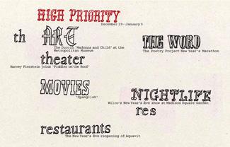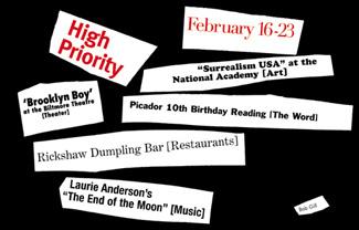 Регулярный отборКаждую неделю редактор журнала New York определяет пятерку самых зрелищных событий, которые ни в коем случае нельзя пропустить на предстоящей неделе. И каждую же неделю дизайн-директор New Yorkа, Luke Hayman, и артдиректор Chris Dixon, выбирают дизайнера, который бы создал топ-иллюстрацию для этого топ-парада. ![]() Michael Ian Kaye Правила просты. В картинке, 11 см высотой и 17см шириной, должны обязательно присутствовать даты недели, перечень пяти собственно отобранных событий, слова «High Priority», и наличие только красный и черный цвета. Поздним вечером в четверг дизайнер получает текст, а поздним пятничным сдает эскизный материал, который к концу понедельника приобретает окончательный отшлифованный вид. Такое упражнение, с укоренившимися ограничениями и наотрез неприемлемые отхождения в сторону, до боли напоминает графдизайнерские Олимпийские игры.