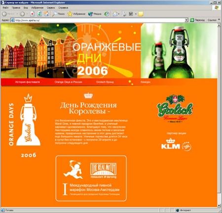 Kреативное агентство "Мачо" по заказу московского представительства фирмы Grolsch разработало промо-сайт для голландского фестиваля "Оранжевые дни"Kреативное агентство "Мачо" сообщило Sostav.ru, что по заказу московского представительства фирмы Grolsch был разработан промо-сайт для голландского фестиваля "Оранжевые дни" - www.orangedays.ru. Известный и любимый в Голландии фестиваль - "Оранжевые дни", является не чем иным как празднованием Дня рождения королевы. Это - "и амстердамская масленица Mardi Gras, и пивной праздник Beerfest, и уличный карнавал одновременно. Благодаря тому, что население Амстердама всегда славилось своим легким и веселым нравом, праздничное настроение в этот день достигает еще большего накала. Уличные торжества длятся 24 часа в сутки без остановки - с полуночи 29 апреля и до полуночи следующего дня". Настало время и российским любителям истории и пива Голландии присоединиться к этому веселому празднику. ![]() |