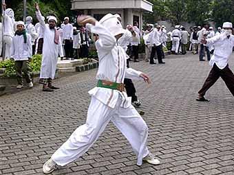 Мусульмане забросали камнями редакцию Playboy в ИндонезииВ Джакарте толпа мусульман забросала камнями индонезийскую редакцию журнала Playboy, сообщает AP. Участники демонстрации потребовали прекратить издание в стране индонезийской версии Playboy, которая появилась в продаже в прошлую пятницу. По словам очевидцев, митингующие выбили несколько окон, дверь и взломали ворота, ведущие во двор редакции. Всего в акции протеста принимали участие около 150 членов радикальной группировки "Фронт защитников ислама". Демонстрация закончилась столкновениями с полицией. Впрочем, жертв удалось избежать. Выход индонезийской версии журнала вызвал негодование у религиозных радикалов. В прошлую пятницу группировка "Фронт защитников ислама", которая не раз устраивала погромы в местных барах и посольствах западных государств, пообещала силой убрать издание с прилавков магазинов. ![]() LENTA.RU |