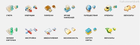 Банковские сайты. На любой странице интернета всегда есть пиктограммы. По крайней мере, на панеле управления. Казкоммерцбанк использовал на своем сайте еще целый ряд пиктограмм, помогающих навигации.