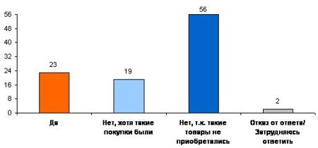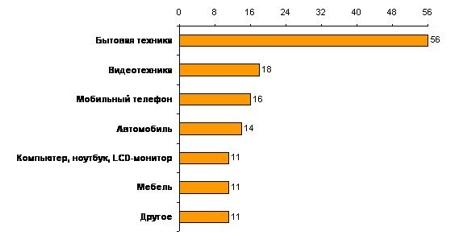 Romir Monitoring провел исследование о потребительских кредитахКак сообщили Sostav.ru, каждый четвертый москвич (23%) пользовался кредитами за последний год для приобретения товаров длительного пользования. Из них более половины опрошенных (56%) приобрели в кредит бытовую технику, каждый пятый кредит (18%) москвичи брали на покупку видеотехники, еще 16% заемщиков покупали мобильные телефоны, 14% - автомобиль. Таковы результаты исследования, проведенного холдингом Romir Monitoring в феврале текущего года. На погашение кредита треть заемщиков (36%) тратят до 10% своего среднемесячного дохода, 14% заемщиков на погашение долга тратят до 15% дохода, еще 14% опрошенных ежемесячно отдают банку в счет погашения кредита до 25% своего дохода… В феврале текущего года исследовательский холдинг Romir Monitoring в рамках исследования потребительских предпочтений на рынке финансово-кредитных организаций задал москвичам ряд вопросов о пользовании кредитными услугами. В телефонном опросе по репрезентативной выборке приняли участие 986 респондентов от 18 лет и старше. Статистическая погрешность не превышает ±3%. Респондентам был задан вопрос: Пользовались ли Вы или члены Вашей семьи кредитами за последние 12 месяцев при приобретении товаров длительного пользования и/или услуг? (%) Ответы на него распределились следующим образом: ![]() Как свидетельствуют результаты исследования, почти четверть москвичей (23%) пользовались кредитами за последний год при приобретении товаров длительного пользования. Такой ответ несколько чаще, чем по выборке в среднем давали жители столицы в возрасте от 25 до 34 лет (35%), а также обладатели высокого уровня доходов (29%). Каждый пятый житель столицы (19%) за последние 12 месяцев приобретал товары длительного пользования, однако такие покупки совершались без использования кредитов. Как правило, такой ответ давали респонденты в возрасте от 18 до 24 лет (28%), а также обладатели высокого уровня доходов (29%). Еще 56% москвичей ответили, что не покупали за последний год каких-либо товаров длительного пользования. Такой ответ характерен для жителей столицы старше 60 лет (82%) и обладателей среднего уровня доходов (62%). Респондентам, которые за последние 12 месяцев пользовались кредитами при приобретении товаров длительного пользования и/или услуг, был задан вопрос: Если Вы пользовались кредитом, то какие товары и/или услуги Вы приобретали? (%) Ответы на него распределились следующим образом (поскольку респонденты могли указать несколько вариантов ответа, то итоговая сумма ответов может быть не равна 100%): ![]() Согласно полученным данным, более половины всех приобретаемых товаров в кредит - это бытовая техника (56%). Несколько чаще бытовую технику "в долг" покупают женщины (64%), среди мужчин такой ответ дали 46% опрошенных. Несколько чаще, чем по выборке в среднем, о покупки домашней техники в кредит говорили респонденты в возрасте от 35 до 44 лет (61%). Каждый пятый кредит (18%) москвичи брали на покупку видеотехники. Такой ответ более характерен для респондентов в возрасте от 35 до 44 лет (23%). Еще 16% москвичей покупали в кредит мобильные телефоны. Как правило, кредит в целях "мобилизации" брали молодые люди (23%). О покупке в "долг" автомобиля сказали 14% опрошенных. Несколько чаще, чем по выборке в среднем такой ответ давали москвичи в возрасте от 45 до 59 лет (18%). За последние 12 месяцев 11% заемщиков испол